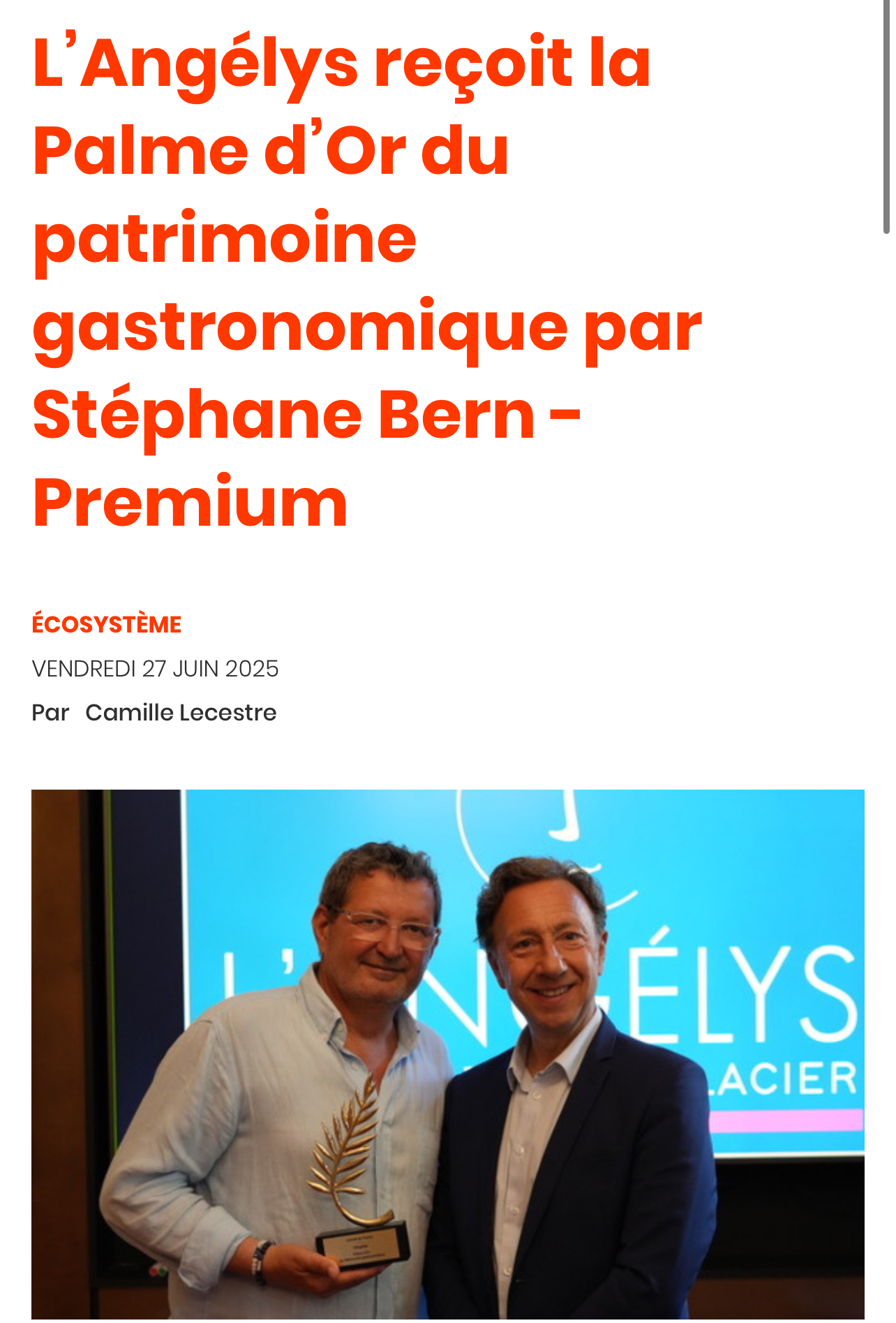 L’Angélys reçoit la Palme d’Or du patrimoine gastronomique par Stéphane Bern