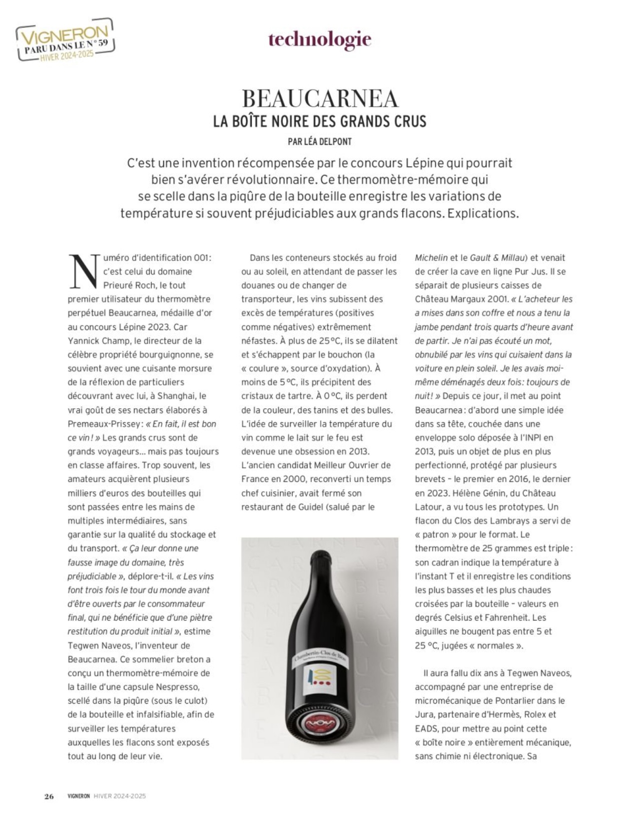 Chaque année, La Revue du vin de France remet ses grands prix aux personnalités qui font vivre et rayonner le vin. Pour le prix de l’innovation, la RVF distingue Beaucarnea.